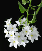 | (Potato vine) Form: fast growing twining climber Aspect: full sun to part shade Soil: well drained organic Growing: prune to maintain shape and to keep dense growth. Support main stem. |
