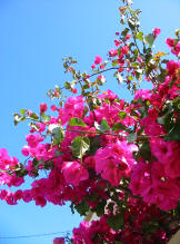 | (Bougainvillea) Form: Fast growing. Coloured bracts. Form: Hooked climber. Aspect: Full sun to shade. Soil: Well drained organic soils. Growing: Prune to a horizontal. Keep controlled & fertilise after flowering.