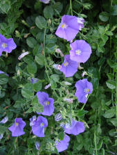 | (Ground Morning Glory) Features: violet flowers spring to autumn Form: fast growing trailing/creeping Aspect: full sun to part shade Soil: well drained coarse organic Growing: clear from the base of other plants and restrict it's vigorous growth.