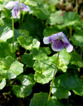 | (Native violet) Features: violet/white flowers all year Form: spreading small leaved groundcover Aspect: sun to shade Soil: anywhere this plant is rampant Growing: clear from the base of other plants and restrict it's vigorous growth
