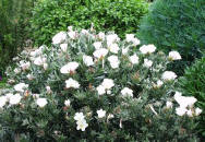 | (Silver Bush) Features: white flowers summer to autumn Form: silver foliage trailing/creeping Aspect: full sun to part shade Soil: well drained coarse organic Growing: clear from the base of other plants and restrict it's growth to other areas.