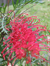 Features: Red/orange pincushion flowers. Form: Rounded shrub to 2m. Aspect: Full sun to part shade. Soil: Well drained organic. Tolerates salt. Growing: Flowers late Winter (feeding time) to Summer. Prune to shape in Autumn.